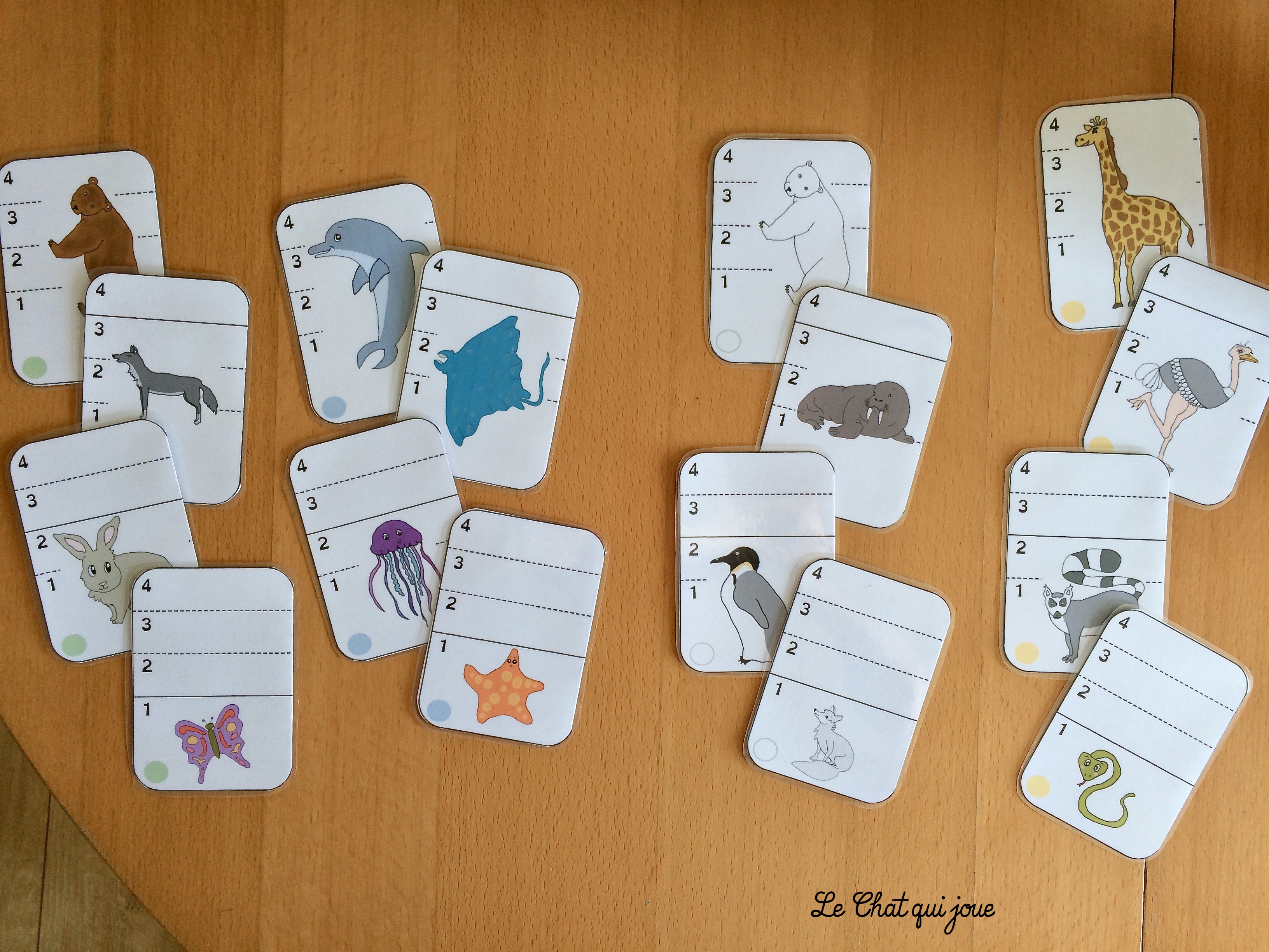 Ce jeu de cartes est intéressant pour aborder les notions spatiales, l’ordre de grandeur, les lieux d’habitat des animaux (même c’est pas super précis, je l’avoue), le tour de rôle (donc l’attente, donc l’inhibition) et puis pour partager un bon moment tout simplement.