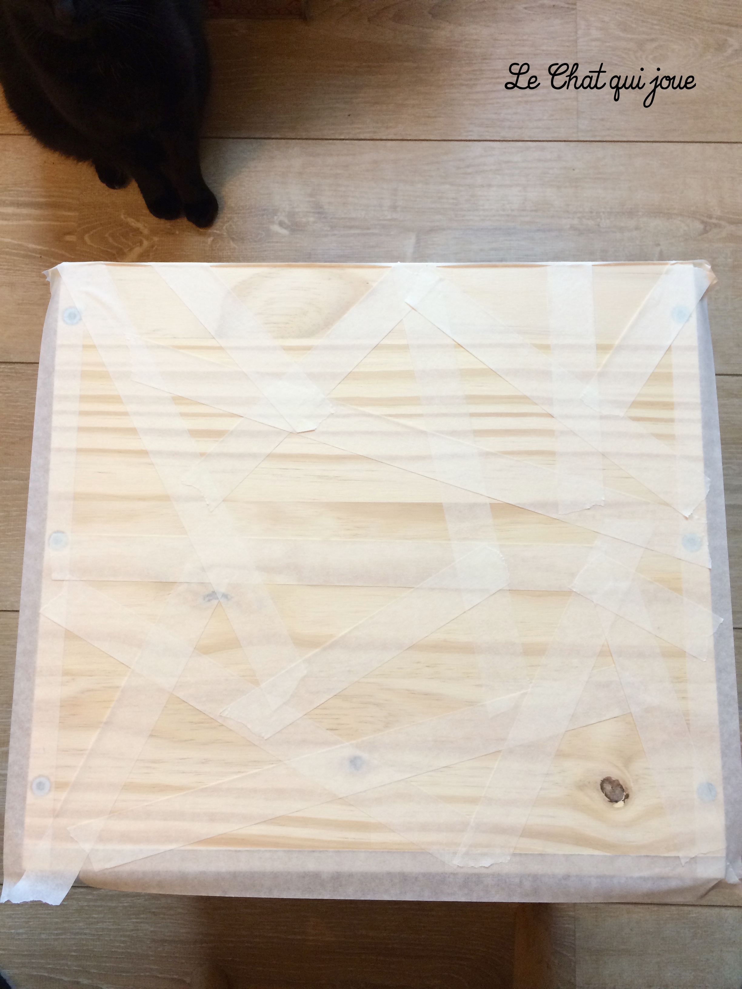 Ensuite, disposez le scotch de masquage pour délimiter vos formes, puis place à la peinture.